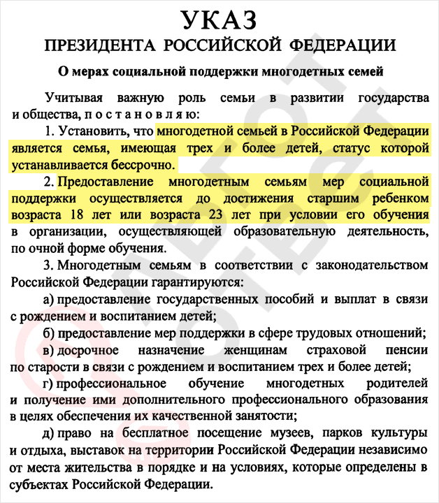 - Наличие не менее трех несовершеннолетних детей в семье.